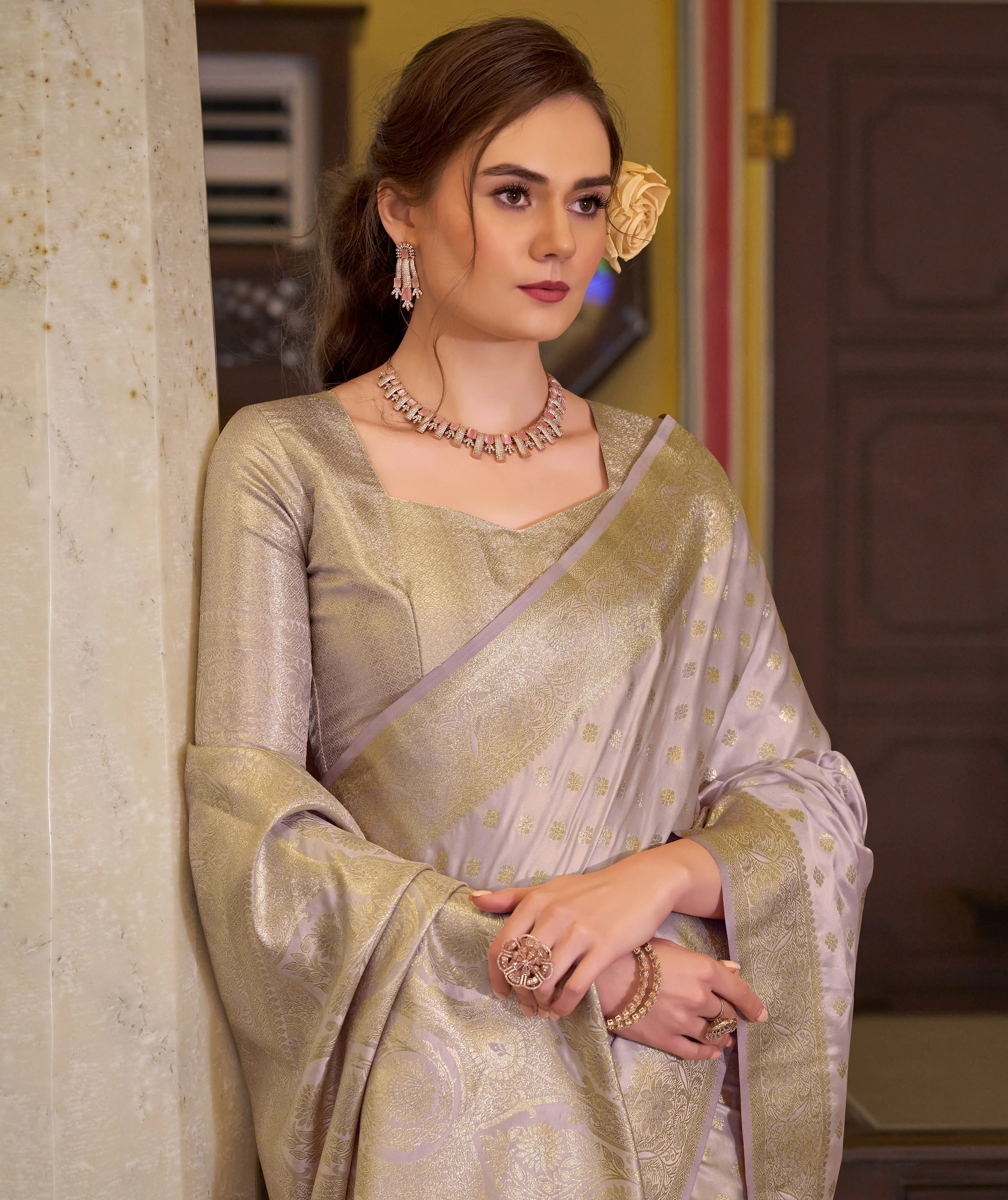 The Lavender Embroidery Work Satin Banarasi Silk Saree is a refined choice for those who appreciate understated luxury. Meticulously woven from satin Banarasi silk, its delicate embroidery enhances the soft lavender fabric with subtle artistry. This saree seamlessly combines traditional craftsmanship with contemporary elegance, making it ideal for formal occasions where grace and poise are paramount. Its smooth texture and muted hue offer a sophisticated silhouette that speaks of timeless beauty.