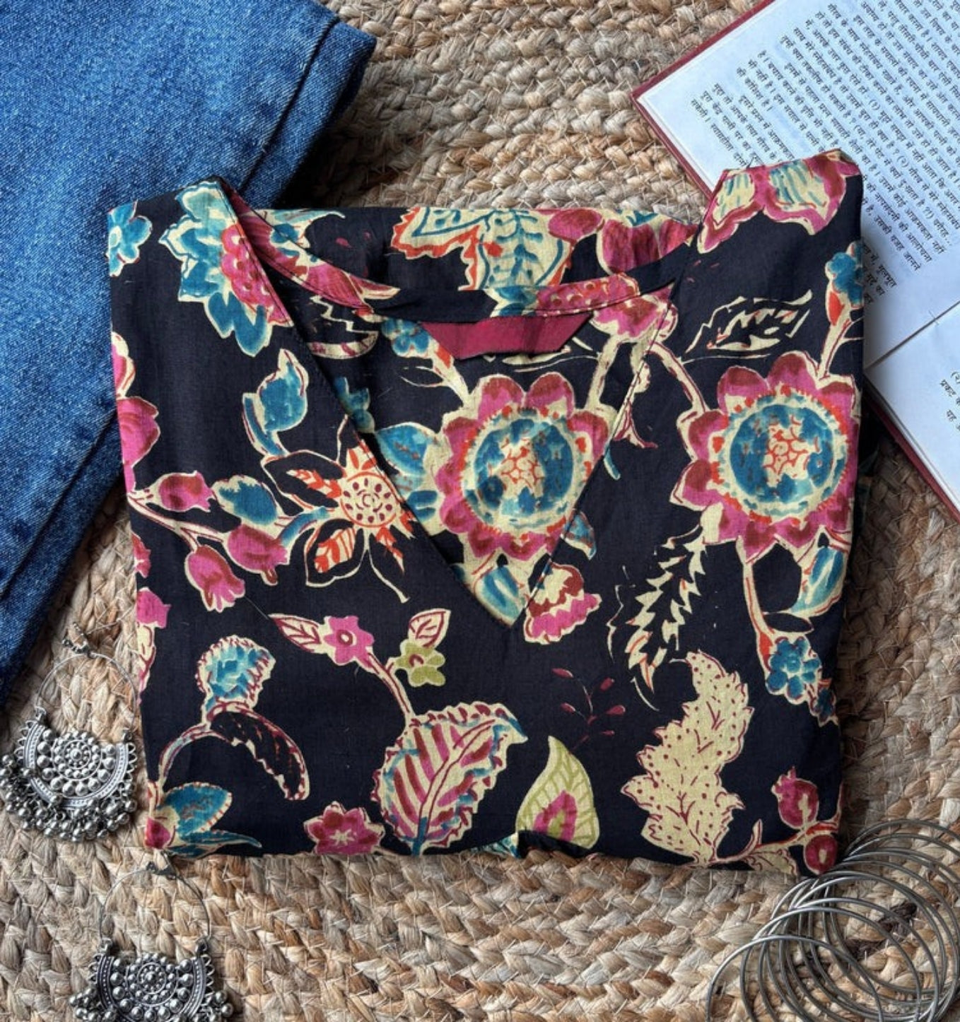 Black Peplum Style Short Kurti Elevate your everyday wardrobe with this sophisticated short kurti, designed for the modern woman who values both style and substance. The distinctive peplum silhouette adds contemporary flair while the lightweight, breathable fabric ensures comfort throughout the day. Whether you're navigating casual weekday moments or attending festive celebrations, this versatile piece transitions seamlessly across occasions.