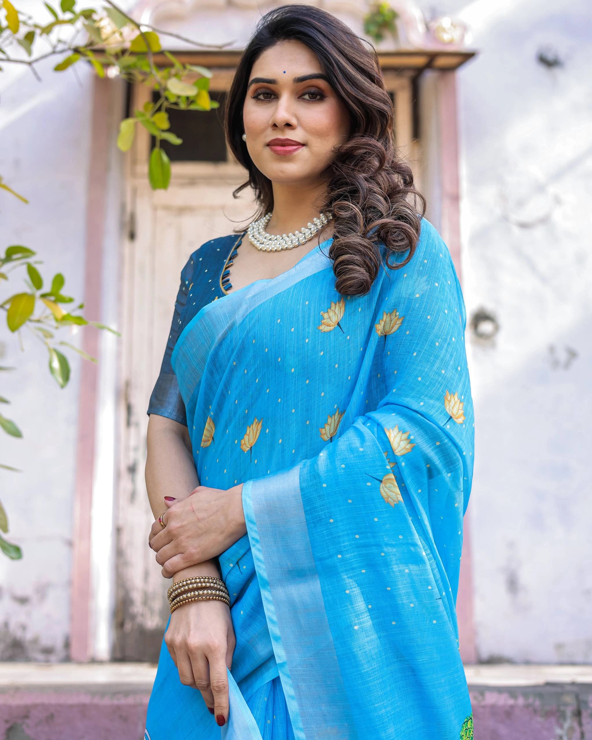 This blueprint saree exemplifies understated luxury through its thoughtfully composed linen-cotton blend. The soft, naturally textured fabric creates an elegant drape while the distinctive print pattern adds visual interest without compromising sophistication. Designed for discerning occasions — from intimate family gatherings to grand celebrations —this piece offers versatility rooted in quality craftsmanship. The breathable blend ensures comfort during extended wear, while the fabric’s inherent durability promises longevity, making it a distinguished addition to your ceremonial wardrobe.