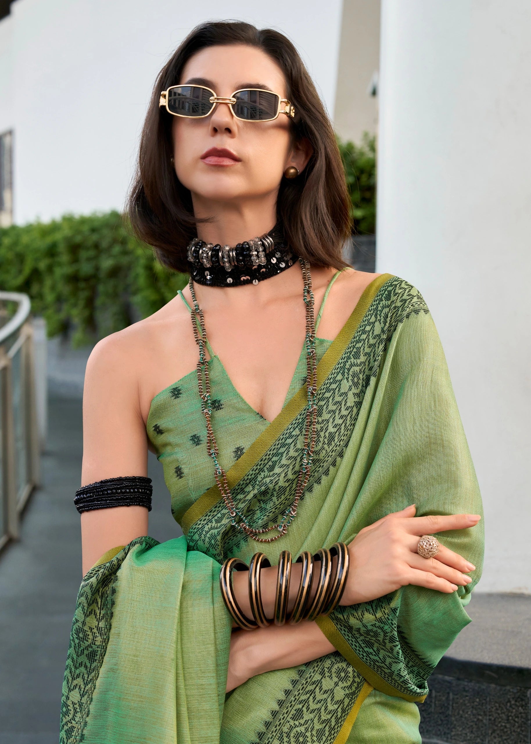 Mehandi Zari Woven Border Linen Tissue Silk Saree