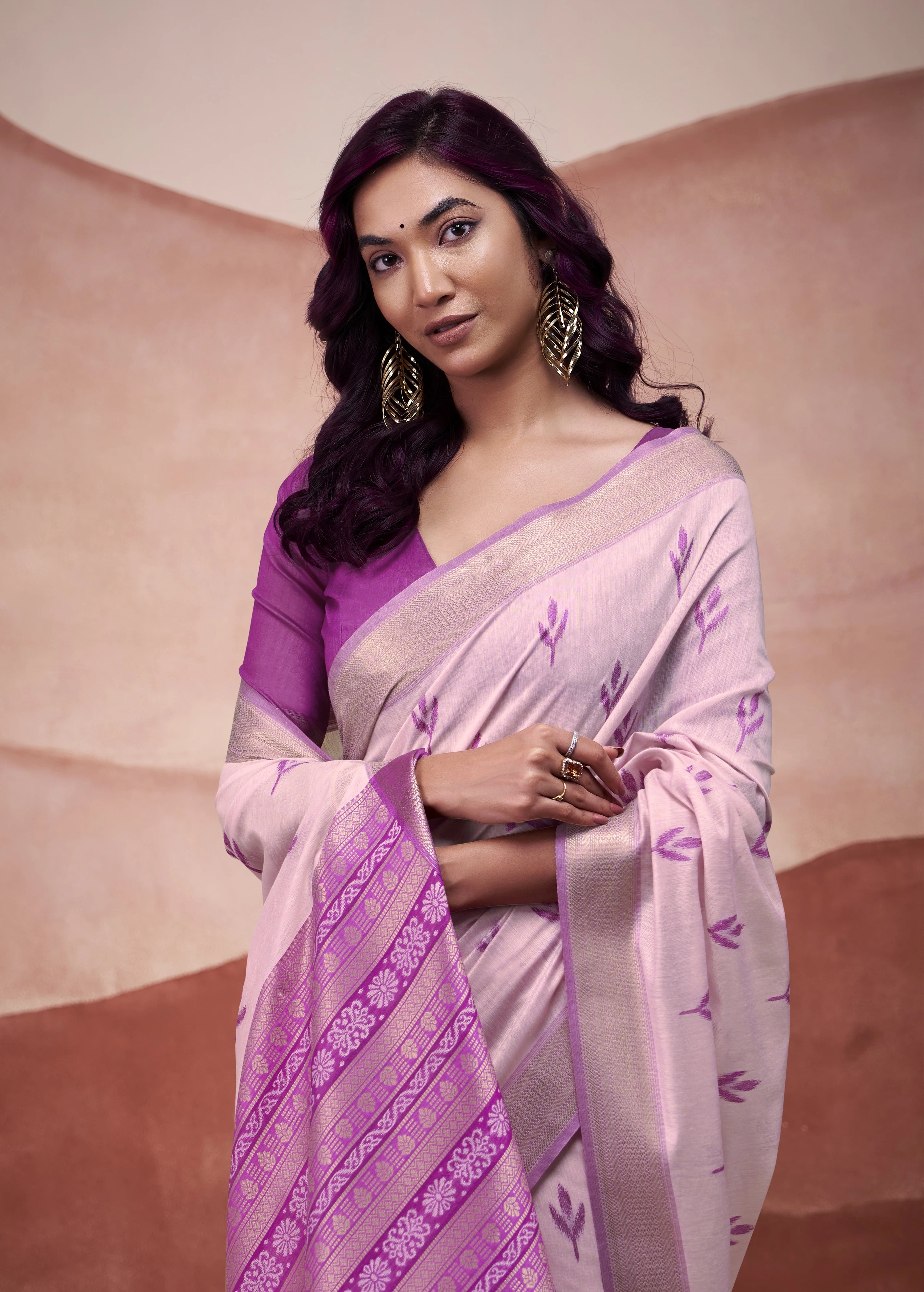 Purple Zari Weaving Cotton Saree