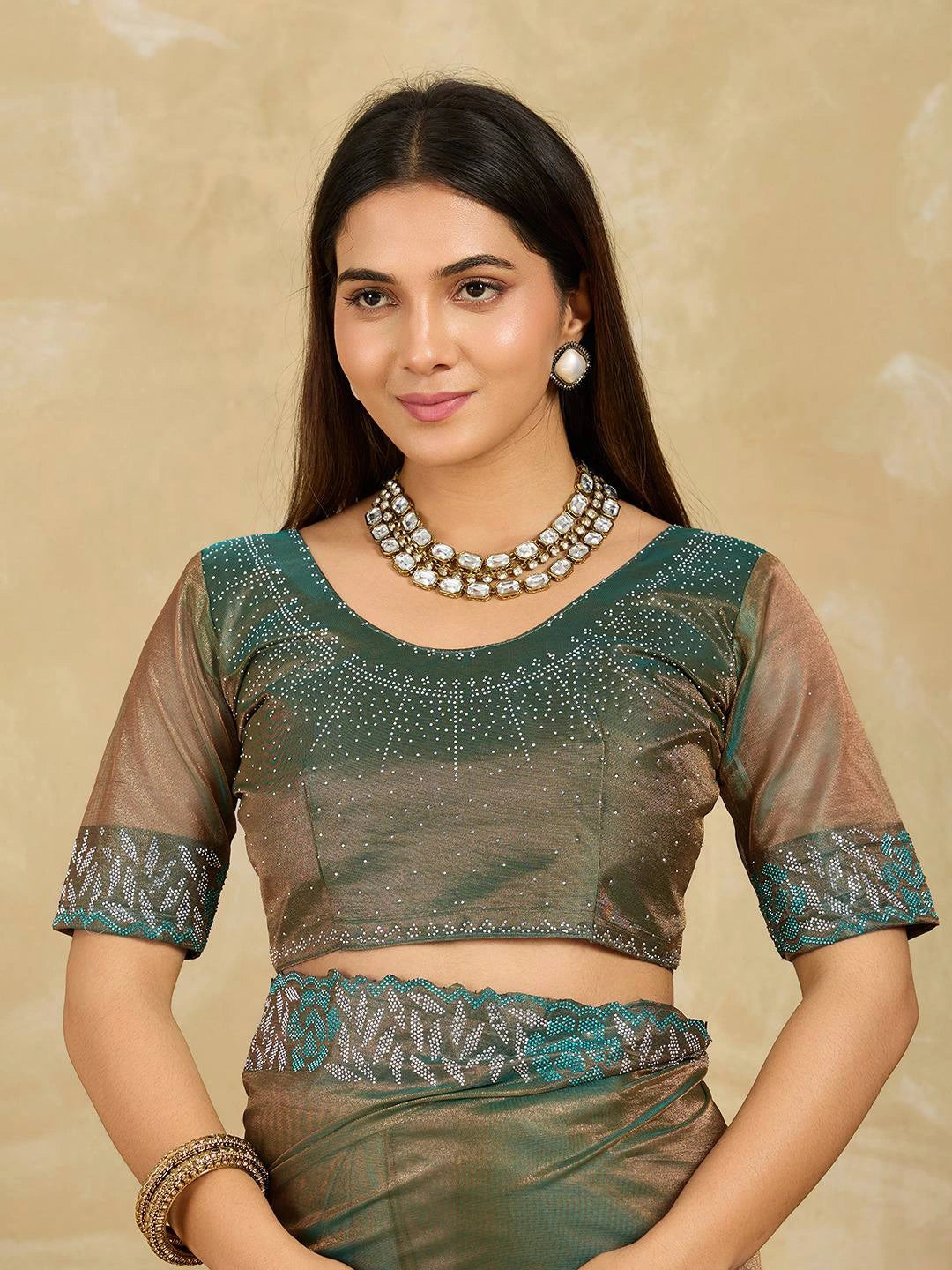 Sea Green Swarovski Work Fendy Soft Net Saree